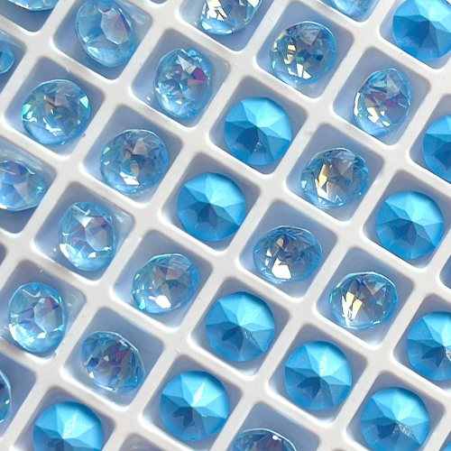 With this collection, we've included 3 Krakovski Crystal pear-shaped stones in Light Siam: one larger and two smaller ones. A particular highlight of this collection are Krakovski 8mm chatons in out-of-this-world beautiful Lt. Sapphire DeLite, of which we included 4. The 1088 cut (with classic extra pointy back, as opposed to some of our other Krakovski chatons) gives it extra sparkly depth. To complete the collection of Krakovski Crystal goodies, we added a 100-piece strand of our new beyond stunning iridescent blue pearls. With all that crystal, we felt Berry Frost still needed some more shine, so we threw in 2 strands of Chinese crystal rondelles: in shimmery white and transparent Siam red. And let's not forget about the sparkly 3mm PRECIOSA Crystal bicones!